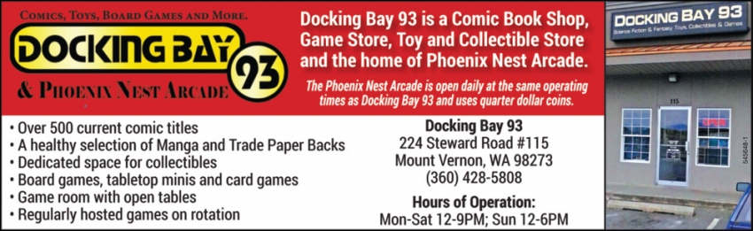 Jan 21, 2025. Docking Bay 93 & Phoenix Nest Arcade Comic Store Ads from GoSkagit
