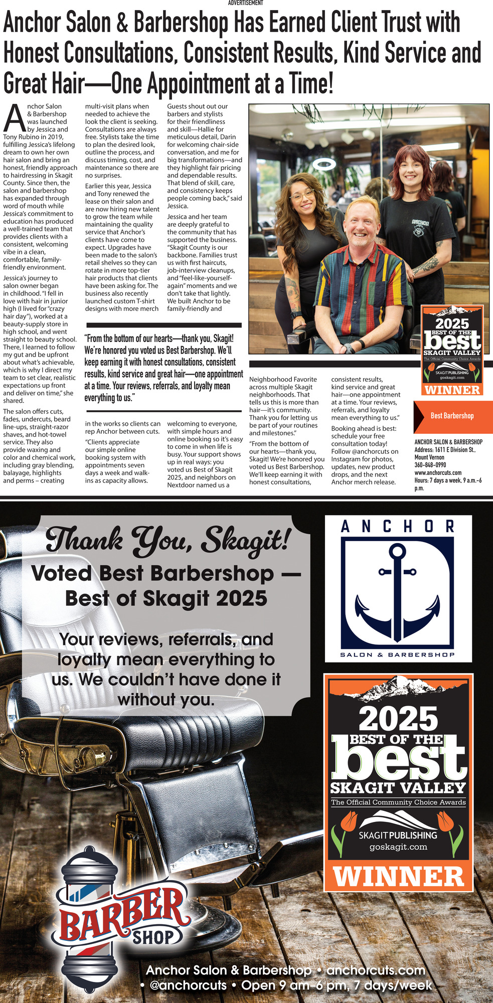 Oct 24, 2025. Anchor Salon & Barbershop Beauty Ads from GoSkagit