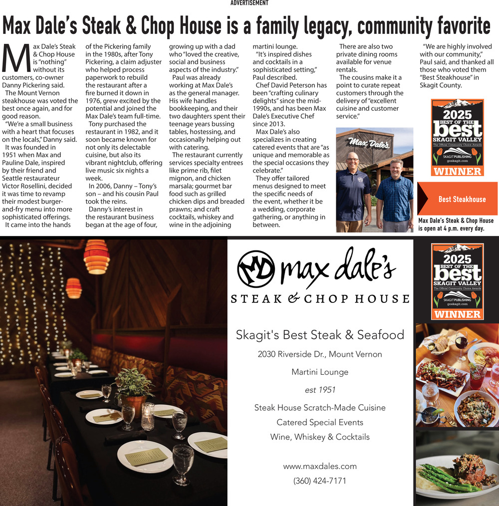Oct 24, 2025. Max Dale's Steak & Chop House Restaurant Ads from GoSkagit