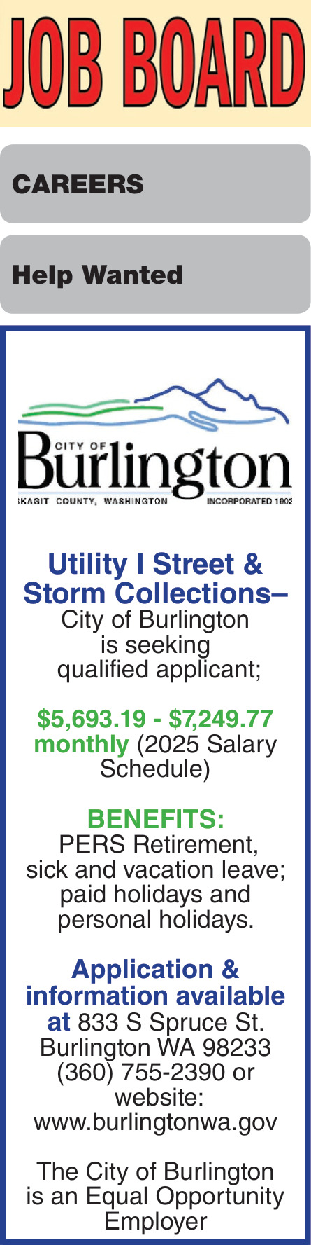 Oct 29, 2025. City of Burlington Jobs Ads from GoSkagit