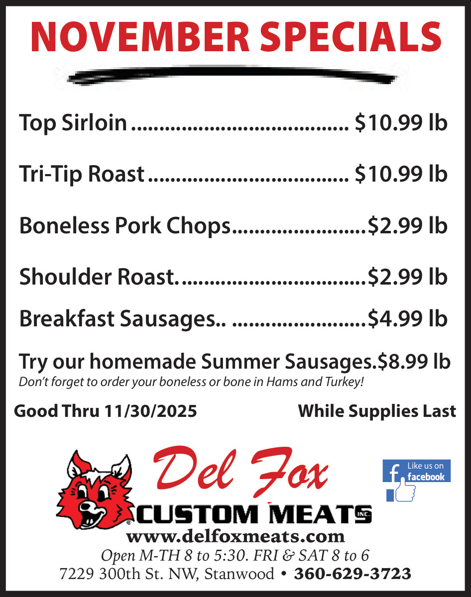 Ads for Del Fox Custom Meats in Stanwood, WA