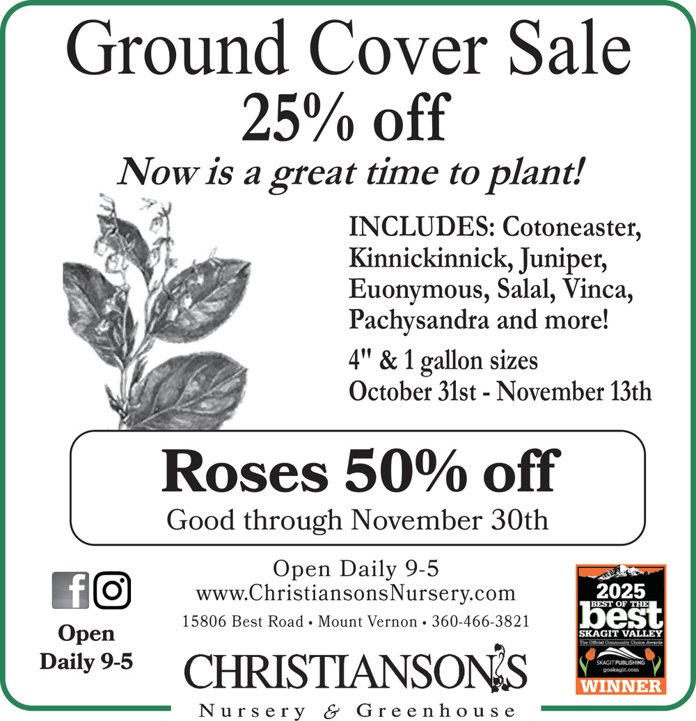 Nov 07, 2025. Christianson's Nursery & Greenhouse Home & Garden Ads from GoSkagit