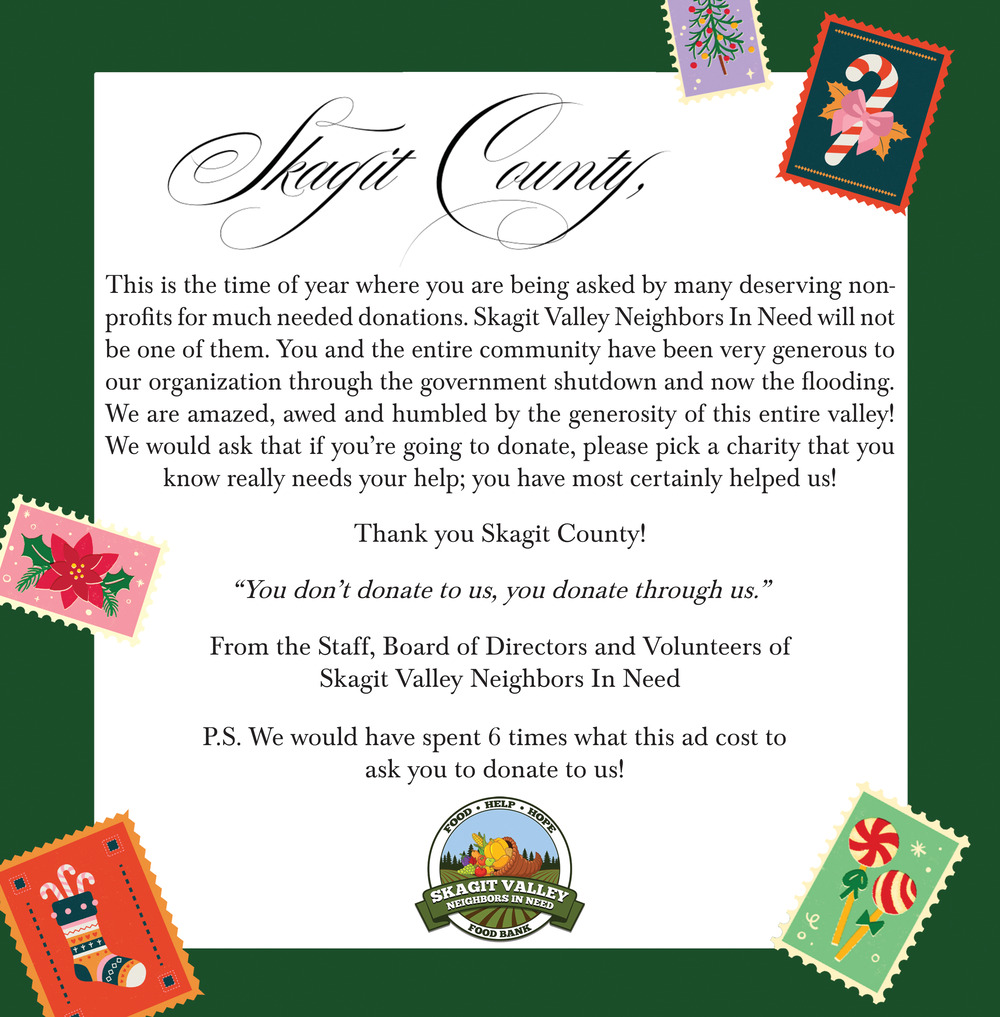 Dec 27, 2025. Skagit Valley Neighbors in Need Food Bank Organization Ads from GoSkagit