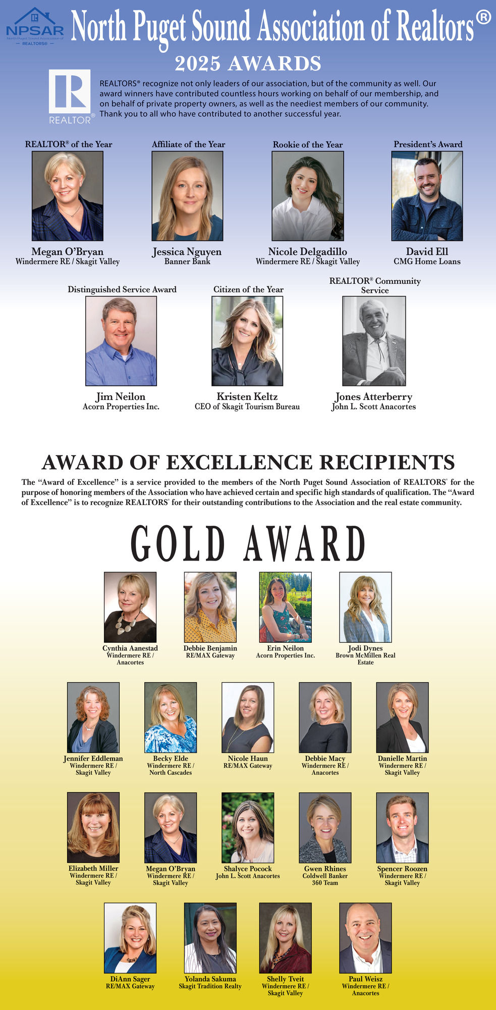 Award of Excellence Recipients