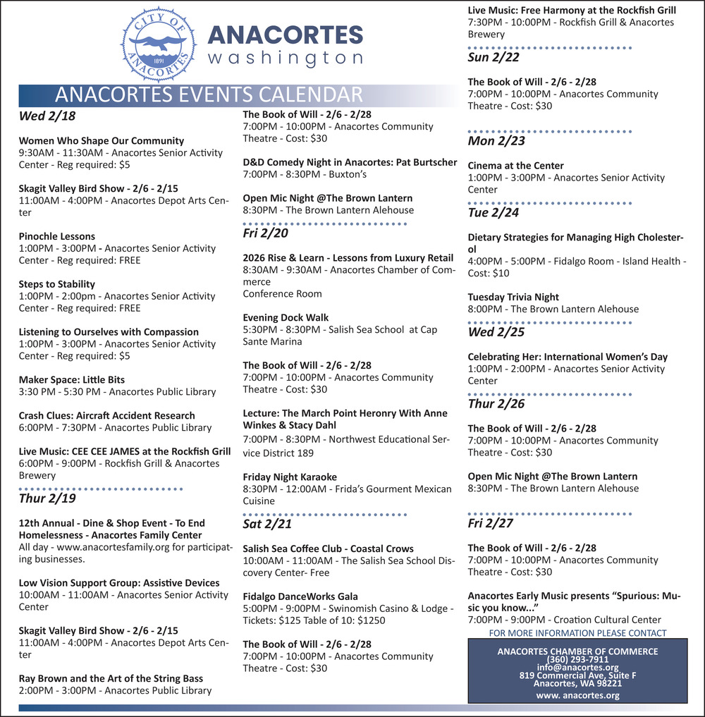 Feb 18, 2026. Anacortes Chamber of Commerce Organization Ads from GoAnacortes