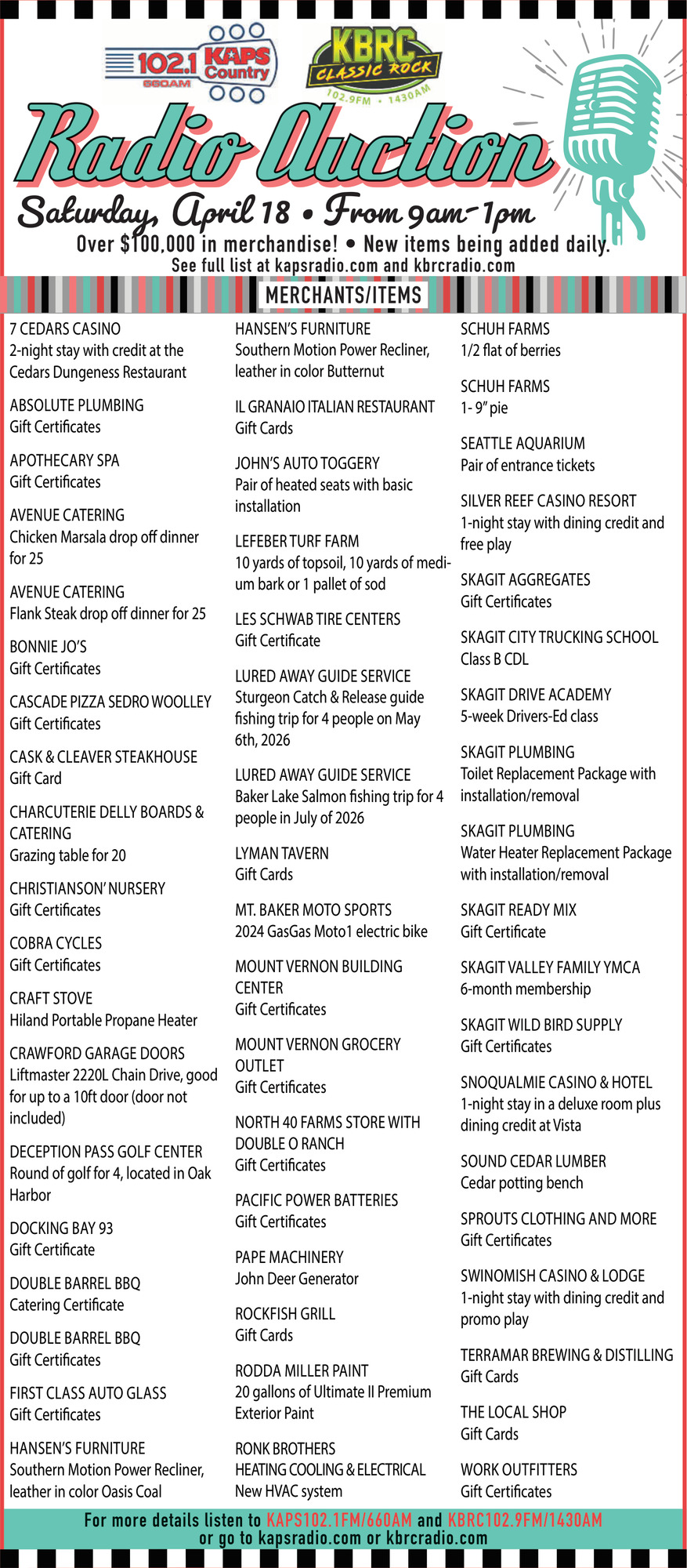Apr 01, 2026. KBRC Classic Rock Auction Ads from GoSkagit