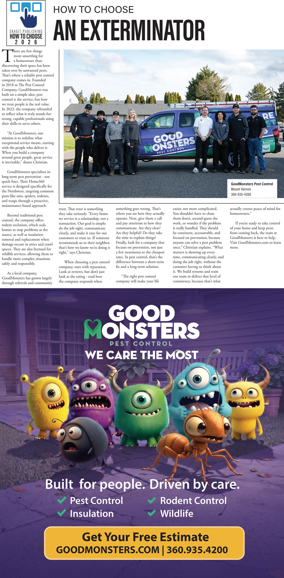 Ads for Good Monsters Pest Control in Mount Vernon, WA